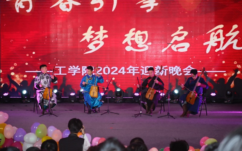 为迎接2024新生暨迎2025新年的到来,展示工学院莘莘学子风采,12月12日晚,工学院在逸夫楼音乐厅举办以“青春引擎 梦想启航”为主题的2024年迎新晚会。校团委书记王振宇,内蒙古神鹰智能科技有限公司董事长边慧龙,工学院领导班子成员,全体师生共同观看演出。