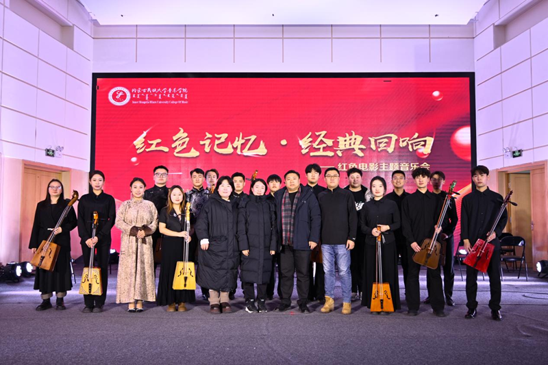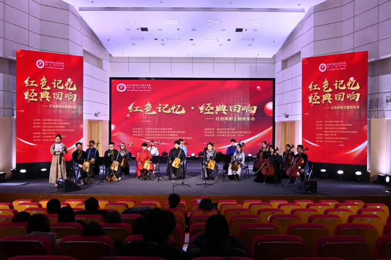 为落实习近平总书记在全国教育大会上的重要讲话精神,统筹推进大中小学思政课程一体化建设,推动思政课程建设内涵式发展,深入挖掘红色音乐中的思政元素,充分发挥红色资源育人功能,12月16日晚,《红色记忆·经典回响》红色电影主题音乐会在内蒙古民族大学音乐厅举行。活动由内蒙古民族大学音乐学院主办,音乐学院器乐教研室承办,依托于内蒙古红色音乐文化传播基地及内蒙古民族大学中华优秀传统文化传承基地。音乐会特别邀请音乐学院实习基地师生代表,观众涵盖大中小学不同阶段师生。