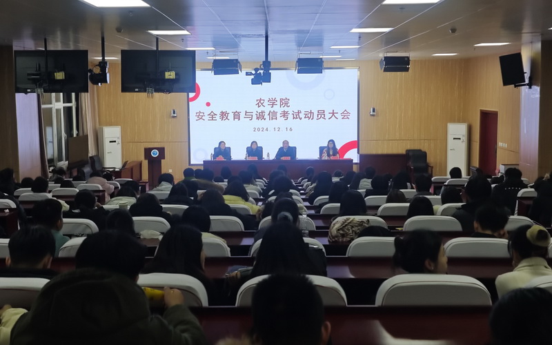 为进一步加强学风建设,营造良好考试氛围,增强学生安全意识和纪律意识,12月16日,农学院在实验楼107开展安全教育与诚信考试动员大会。学院党委书记张晓丽、党委副书记衣海会出席会议。学科秘书杨若琪及2024级全体本科和研究生参加会议。会议由学工办主任李威主持。