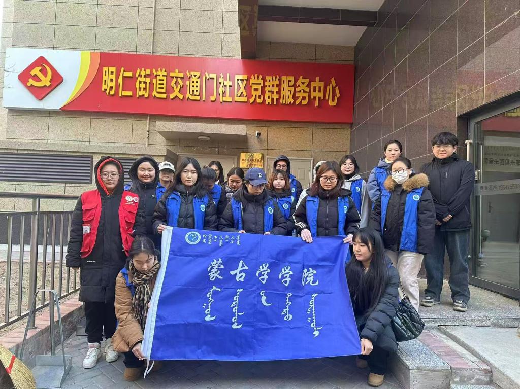 在交通门社区,蒙古学学院志愿者开展“党的二十届三中全会精神”专题学习会,与社区工作人员、居民共同学习,深化了对国家政策的理解;发放“铸牢中华民族共同体意识”宣传材料,增强了社区居民的民族团结意识;慰问孤寡老人,为他们整理家务,带去温暖与关怀;积极参与社区卫生环境清洁,用实际行动助力美好家园建设。
