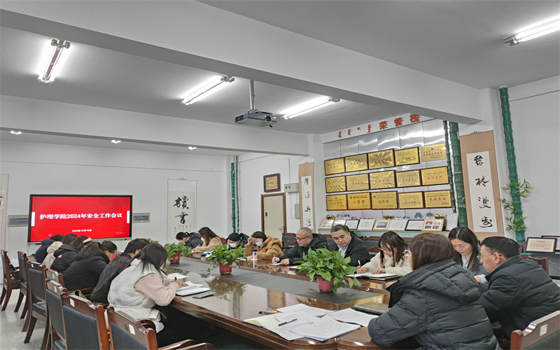 为全面总结本学期安全工作,确保师生生命财产安全,保障学院教育教学和科研工作环境的和谐稳定,12月18日下午,护理学院在医学楼229会议室召开2024年度期末安全工作会议。学院全体教职工参加会议。学院党委书记阿都沁夫主持会议。