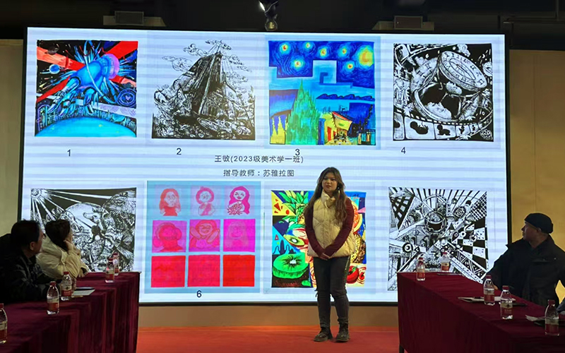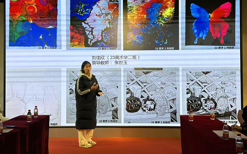 观摩过程中,同学们仔细讲解作品创作理念及创作过程,老师们认真审阅作品,对创意和技法进行专业点评,在肯定成果的同时指出了不足之处,并提出了宝贵的意见和建议。面对面的交流与指导让学生们受益匪浅,激发了他们对艺术的热情与追求。