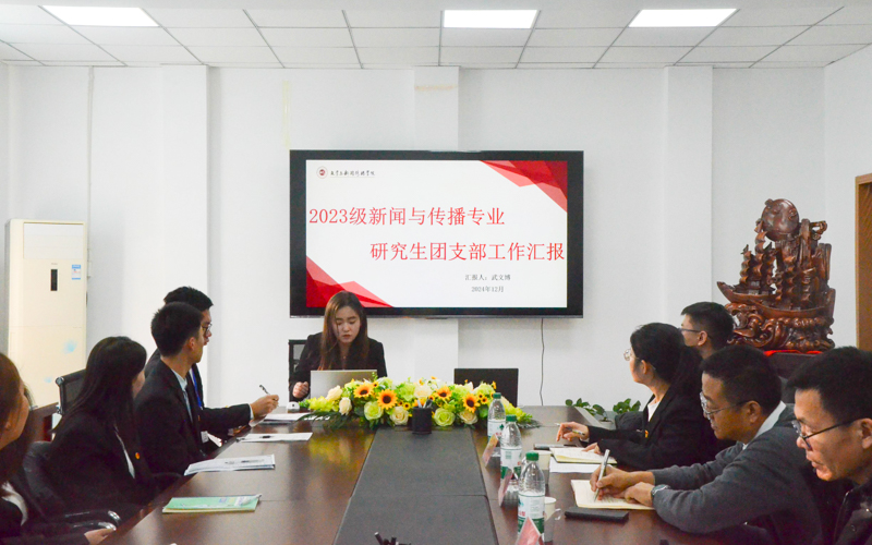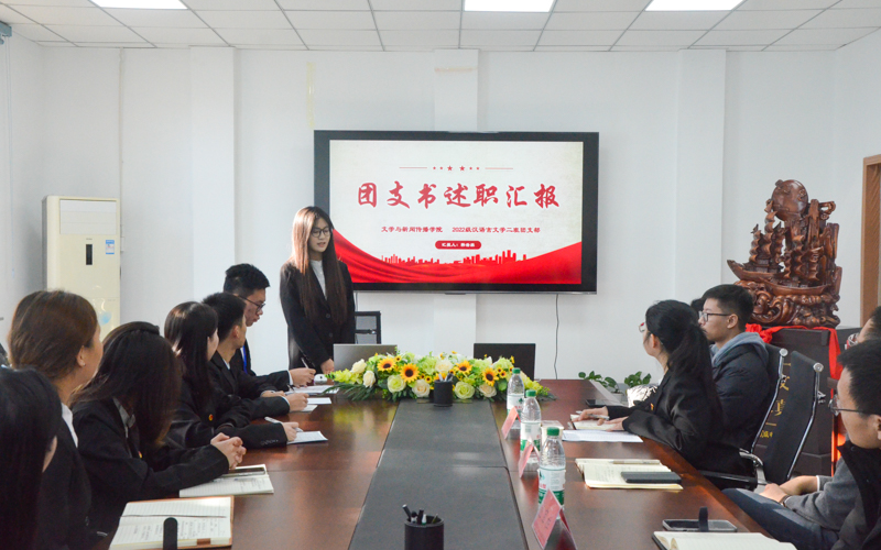 12月18日中午,文学与新闻传播学院在思源楼203会议室召开2024年团支部书记述职报告会。学院党委书记王金双、副书记包宝柱出席会议。全体团支书、团总支委员参加会议。辅导员邱胜男主持会议。