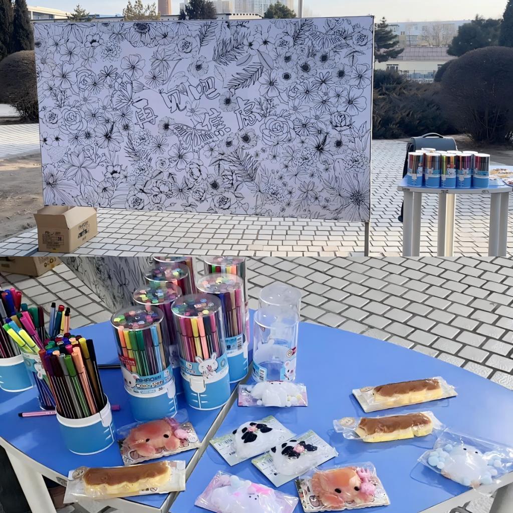 在创意涂鸦区,同学们大胆地发挥想象力,用一笔一画尽情表达内心情感,涂出绚烂色彩。温暖的色调营造出幸福温馨的氛围,深邃的色彩描绘出美好宁静的感觉,抽象大胆的用色方式表达出丰富独特的内心世界。在解压捏捏乐区,质地柔软的超轻黏土和手感细腻的史莱姆泥,在同学们的手中焕发出生命力,让同学们暂时抛开生活的烦恼与疲惫,投入到游戏的乐趣之中。