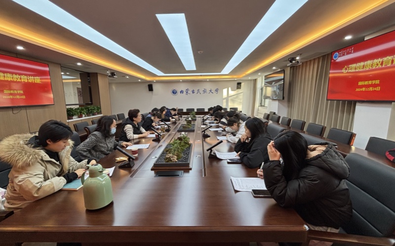 12月24日下午,国际教育学院(国际合作与交流处)邀请学校学生处副处长萨茹拉、大学生心理健康教育中心心理教师孙樱花,为2024级来华留学生进行心理健康教育讲座及心理测试。讲座由国际中文教育教研室主任孟根图雅主持并翻译,2024级新生班主任翟子薇参加讲座。