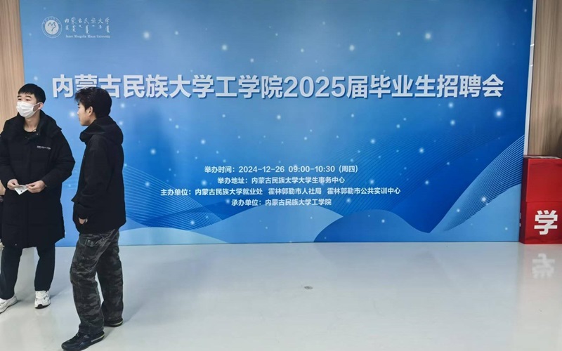 为扎实有效推进2025届毕业生就业工作,12月26日,工学院在大学生“一站式”服务中心举办2025届毕业生招聘会。本次活动由内蒙古民族大学就业处、霍林郭勒市人社局以及霍林郭勒市公共实训中心联合主办,内蒙古民族大学工学院承办。就业处处长嘎日达、学院领导班子成员到现场指导。工学院2025届全体学生参加招聘会。