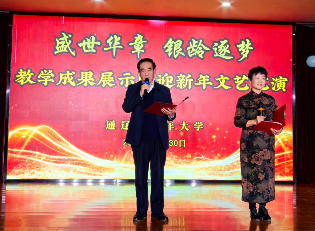 为迎接即将到来的2025年,展示2024年教学成果,我校老年大学声乐班、朗诵班、舞蹈班分别举行了教学汇报暨迎新年演出。朗诵班学员刘向军和张昕原代表我校老年大学参加了通辽市老年大学迎新年演出,表演了原创作品《我的开鲁乡愁》。