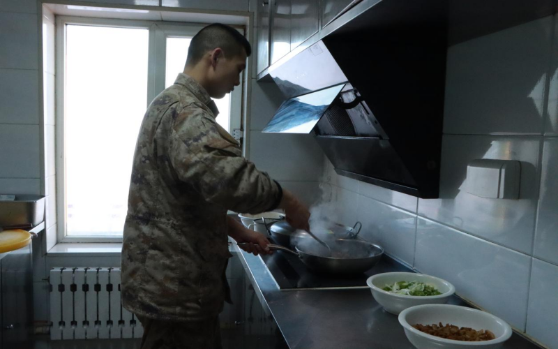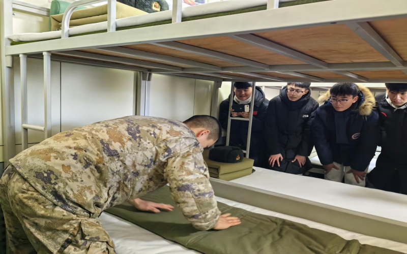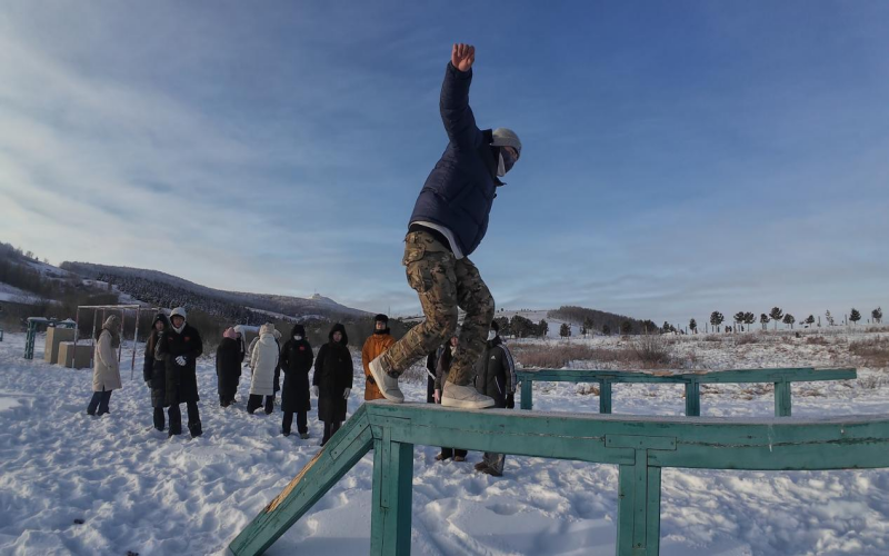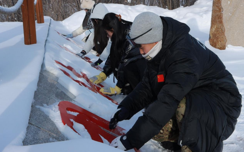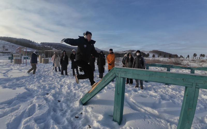 在阿尔山口岸澄澈如洗的碧空之下,实践团成员怀着敬畏的心情瞻仰国门、界碑,在1382号界碑处,实践团成员小心翼翼的拨开界碑上的积雪。在三角山边防哨所,实践团成员聆听士兵讲述习近平总书记视察时的殷殷嘱托,备受鼓舞。实践团成员还参观了三角山边防连荣誉室,与戍边战士互动联谊,学习叠被子,共做拥军餐,在四百米障碍训练场地体验戍边战士日常训练的刻苦与艰辛。实践团所有成员还与戍边战士一同亲身参与戍边巡边工作。