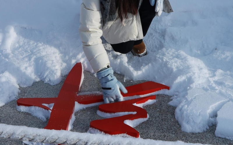 清扫界碑上的积雪