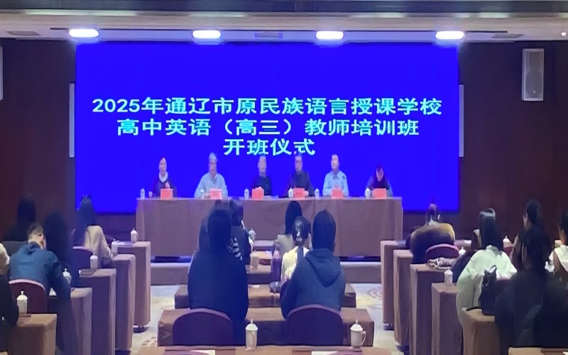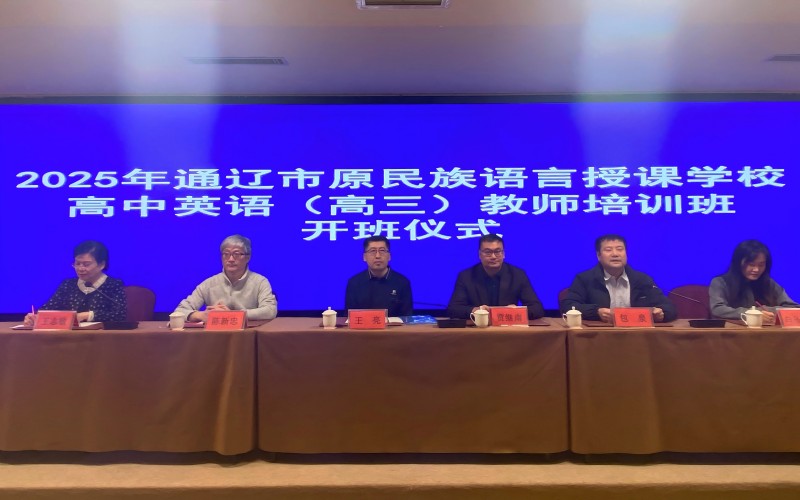 1月21日上午,由我校承办的2025年通辽市原民族语言授课学校高中英语(高三)教师培训班开班仪式在通辽市鑫达国际酒店举行。我校继续教育中心主任王亮、外国语学院副院长贾继南,通辽市教育教研室副主任王志敏出席开班仪式。通辽市原民族语言授课学校参训高三英语教师参加开班仪式。通辽市教育局党建办公室主任包泉主持开班仪式。
