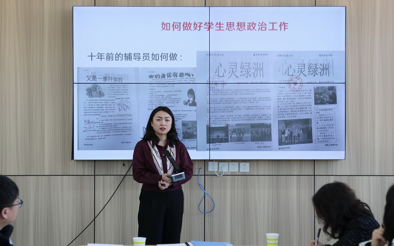 培训会上,尚丹以“三早”活动为切入点,通过十年前后辅导员落实同一项工作对比,深入剖析思想政治教育与校园文化活动的融合之道。她强调,校园文化活动是思政教育的载体和重要抓手,要在引导学生从“被动参与”转向“主动成长”上花心思、下功夫。她结合多年学生工作经验和生动案例阐释了辅导员在思政教育中的角色定位。通过近期网络吐槽,剖析了学生中的潜在风险点,并提出应对策略。她要求,全体辅导员要将思想政治教育工作做得有温度、有深度、有效度。