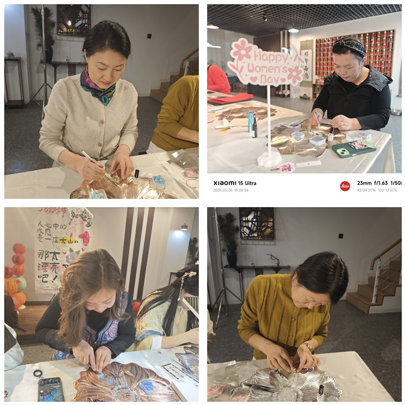 为弘扬中华优秀传统文化,丰富女教职工精神文化生活,3月5日下午,蒙医药学院在非遗传承基地组织开展了“巧手传承非遗,凝聚奋进力量”三八国际劳动妇女节主题活动。学院教职工在螺钿漆器与金箔画的艺术创作中,亲身感受非遗技艺的永恒魅力。