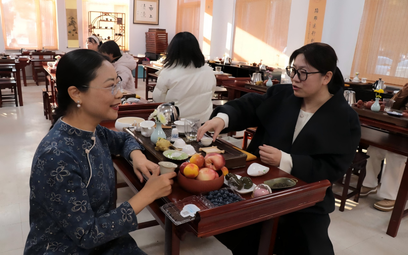 在互动体验环节,老师们积极参与,亲自尝试简单的茶艺操作,亲身体验泡茶所带来的乐趣与雅致。茶歇时刻,大家纷纷赞叹,认为这是一次既难忘又富有意义的活动,在茶香袅袅中享受了一段温馨而美好的时光。