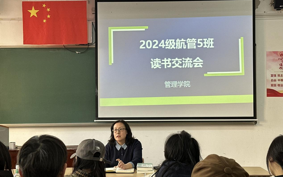 3月5日下午,管理学院在明理楼306室举办了本学期第一场“师生共读专业经典”读书交流会。活动由学院副院长陈文茹发起,2024级航空服务艺术与管理5班同学参加交流活动。
