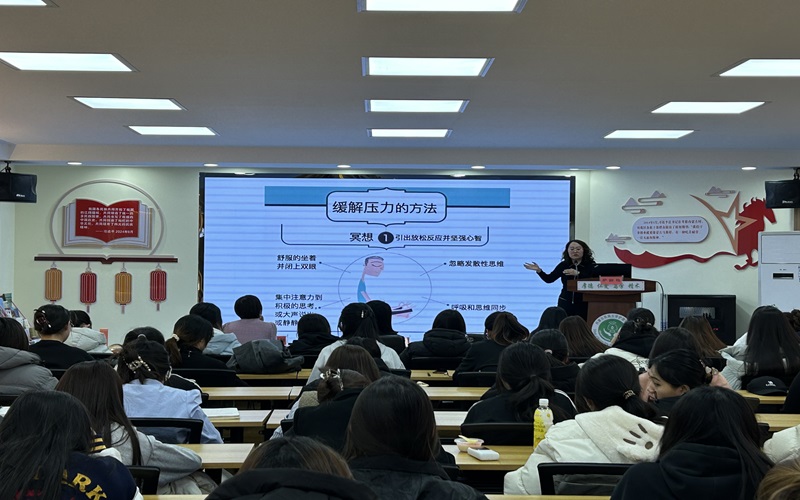讲座开始之前,萨如拉老师以一段有趣的互动解压小游戏开场,瞬间点燃了现场气氛,在欢声笑语中,拉近了彼此的距离。随后的讲座中,萨如拉老师从“认识压力、女大学生的独特挑战、实用自我关怀策略、建立支持系统”四个方面展开了本次讲座。萨如拉老师用生动的案例和扎实的专业知识,深入浅出地剖析了女大学生面临的压力来源,让在场的每一位听众产生强烈共鸣的同时,更提供了一些实用的解压小技巧,如冥想、深呼吸、保持活力、尽情欢笑、学会感激和感恩等,让大家受益匪浅,重拾内心的宁静与自信。