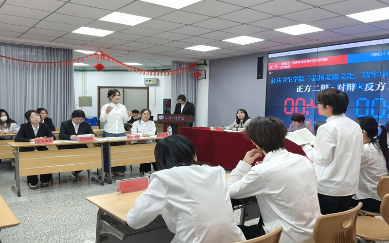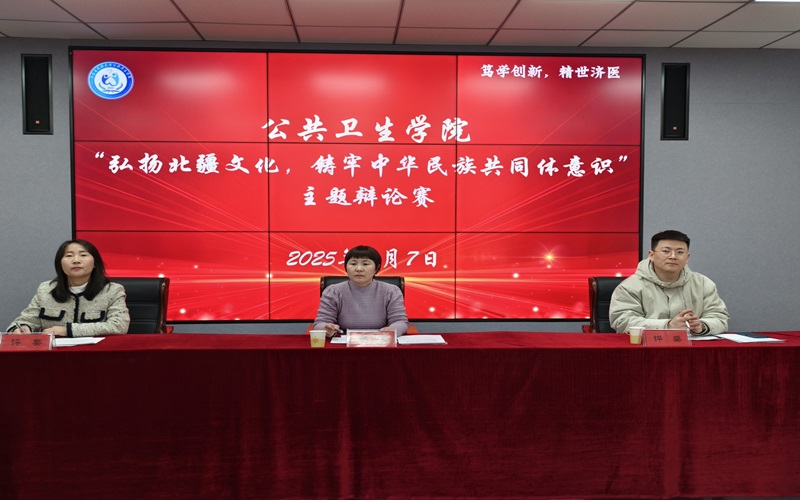 为弘扬北疆文化,铸牢中华民族共同体意识,3月7日,公共卫生学院在医学楼600多功能厅(会议室)成功开展了以“弘扬北疆文化,铸牢中华民族共同体意识”为主题的辩论赛。比赛邀请法学院团总支副书记黄格尔、公共卫生学院团总支副书记乌兰图雅以及教工党支部统战委员、康复治疗学教研室王策老师担任评委。共三组六支队伍36名同学参加比赛。