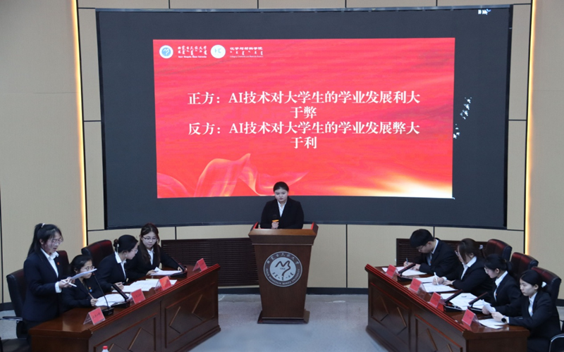 另一辩题“ AI 技术对大学生的学业发展利大于弊还是弊大于利”同样引发了激烈交锋。正方指出 AI 技术能够为大学生提供海量学习资源、智能学习辅助工具,帮助提高学习效率、拓展知识边界;反方则担忧 AI 技术可能导致学生过度依赖、自主思考能力下降,甚至存在学术不端风险,如利用 AI 完成作业、撰写论文等。