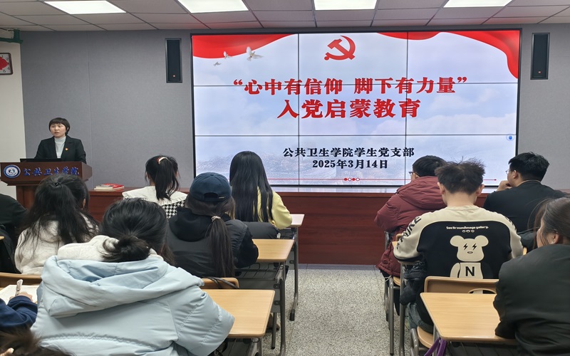 3月14日,公共卫生学院学生党支部在医学楼601多功能厅会议室开展“心中有信仰,脚下有力量”主题入党启蒙教育。学生党支部书记乌兰图雅主讲,55名学生到场聆听。