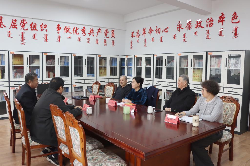 3月25日下午,通辽职业学院老教授协会会长张金、秘书长沃德勒夫到我校老年活动中心与我校老教授协会(老教授报告团)调研座谈。我校老教授协会(老教授报告团)会长娜仁图雅,常务副会长张铁男,副会长蒋极峰,秘书长孟丽群参加座谈。会议由娜仁图雅主持。