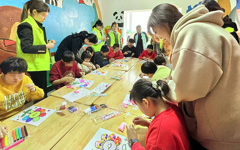 全体党员参观了校园环境、医校合作康复区,并观摩了课堂教学,了解了孩子们生活、学习、疗愈的日常情况。在艺术互动环节,师生与孩子们共同完成艺术作品,过程中大家耐心指导、真诚互动,通过黏土手工制作画作鼓励孩子们用艺术表达内心世界。