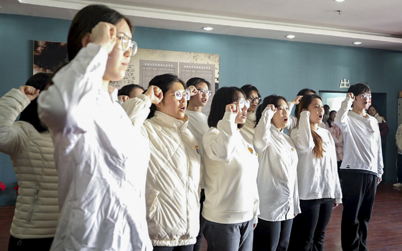 活动现场,党员师生面向党旗重温入党誓词;共青团员重温入团誓词。铿锵誓言回荡在纪念馆内,彰显了新时代青年传承红色基因、担当复兴使命的决心。