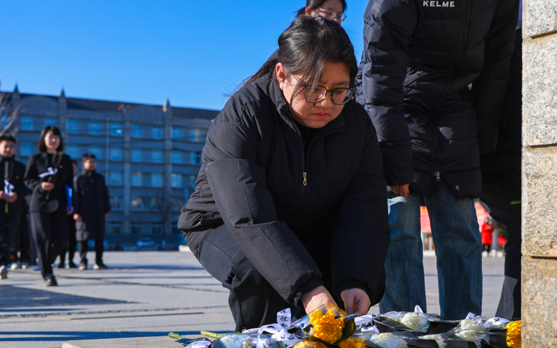 活动伊始,全体师生整齐列队,面向徐永清烈士塑像肃立默哀一分钟。春日的晨光中,学生代表手捧黄白两色菊花缓步上前,将象征着崇高敬意与深切哀悼的鲜花敬献给为民族解放事业英勇献身的革命先烈,朵朵鲜花寄托着新时代青年对革命先辈的无限追思。