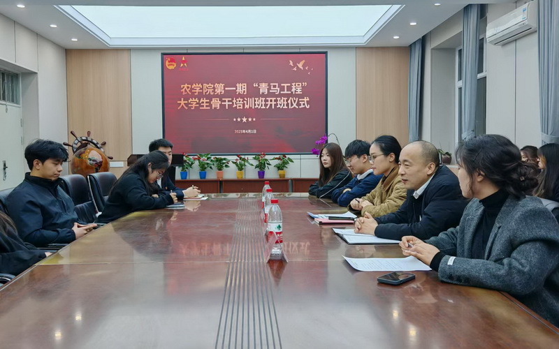 为深入学习贯彻习近平新时代中国特色社会主义思想和党的二十大精神,认真贯彻落实习近平总书记关于青年工作的重要思想。4月1日,农学院在农学楼110会议室举办第一期“青年马克思主义者培养工程”大学生骨干培训班开班仪式。学院党委副书记衣海会,学院辅导员及全体学员参加活动,辅导员陈媛媛主持仪式。