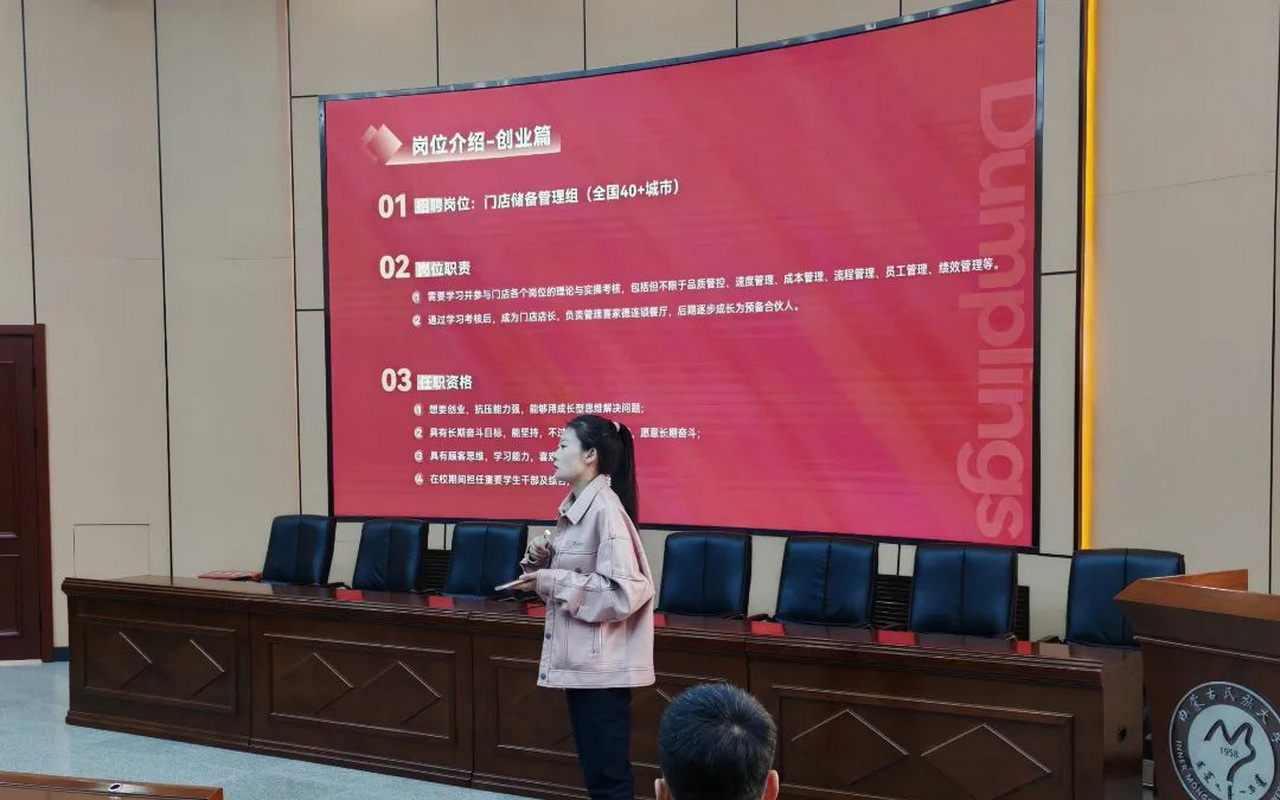 招聘会现场气氛热烈,人头攒动。通辽现春食品加工有限公司负责人向同学们展示了公司的运营过程和企业文化,赢得了在场学生的阵阵掌声。负责人还详细介绍了公司的薪资待遇和福利政策,为学生们的就业提供了坚实保障。喜家德水饺餐饮有限公司代表详细介绍了喜家德的品牌故事、企业文化以及岗位需求,并通过PPT展示了公司的招聘流程和职业发展路径。在互动环节,同学们积极提问,公司代表耐心解答,现场气氛十分活跃。本次校园招聘会不仅为毕业生们提供了与知名企业面对面交流的机会,更拓宽了他们的就业渠道,帮助他们更好地了解就业市场。通辽现春食品加工有限公司和喜家德水饺餐饮有限公司负责人表示,希望能与学校建立更紧密的合作关系,共同培养更多优秀人才。