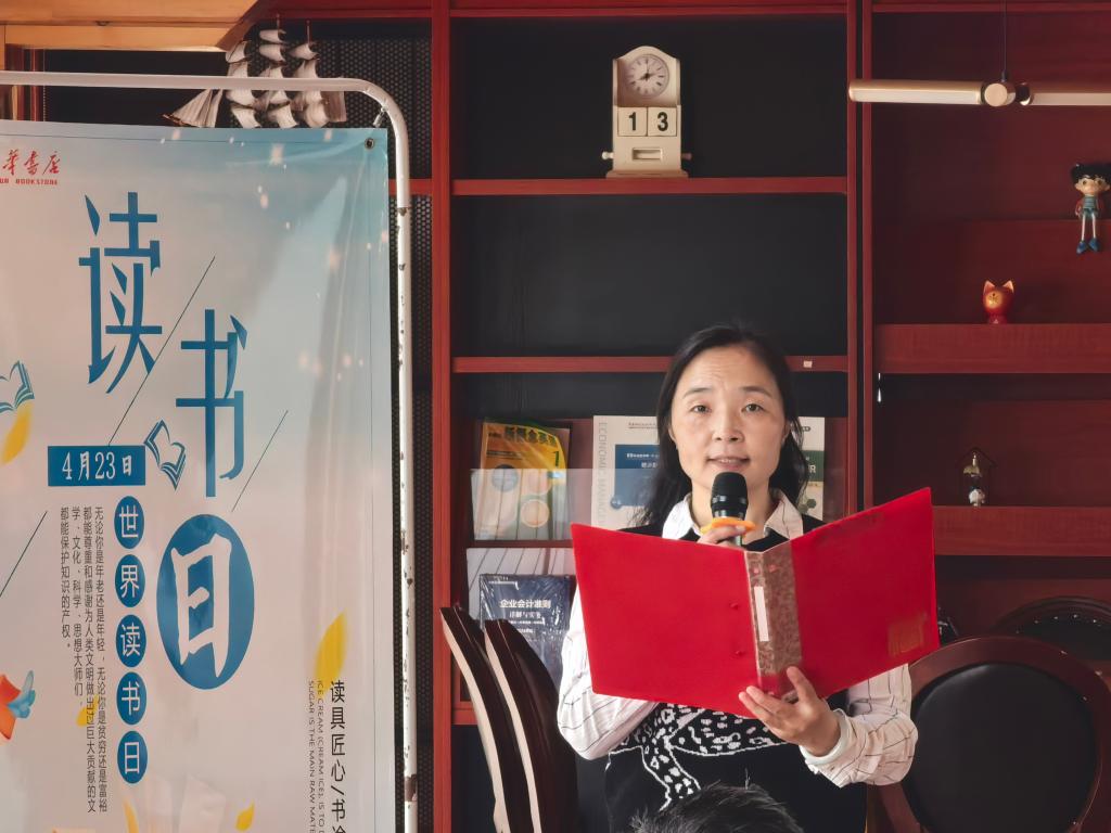新华书店明理书屋经理丽娜宣读全民阅读活动倡议书