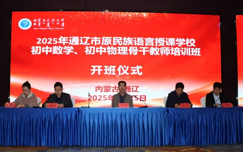 4月25日上午,由我校承办的2025年通辽市原民族语言授课学校初中数学、初中物理骨干教师培训班开班仪式在通辽市碧桂园凤凰酒店凤凰国际会议中心召开。学校继续教育中心主任王亮、数学科学学院副院长张永富、物理与电子信息学院副院长周昆鹏,通辽市原民族语言授课学校99名初中数学、初中物理骨干教师参加开班仪式。通辽市教育局党建办公室主任包泉主持仪式。