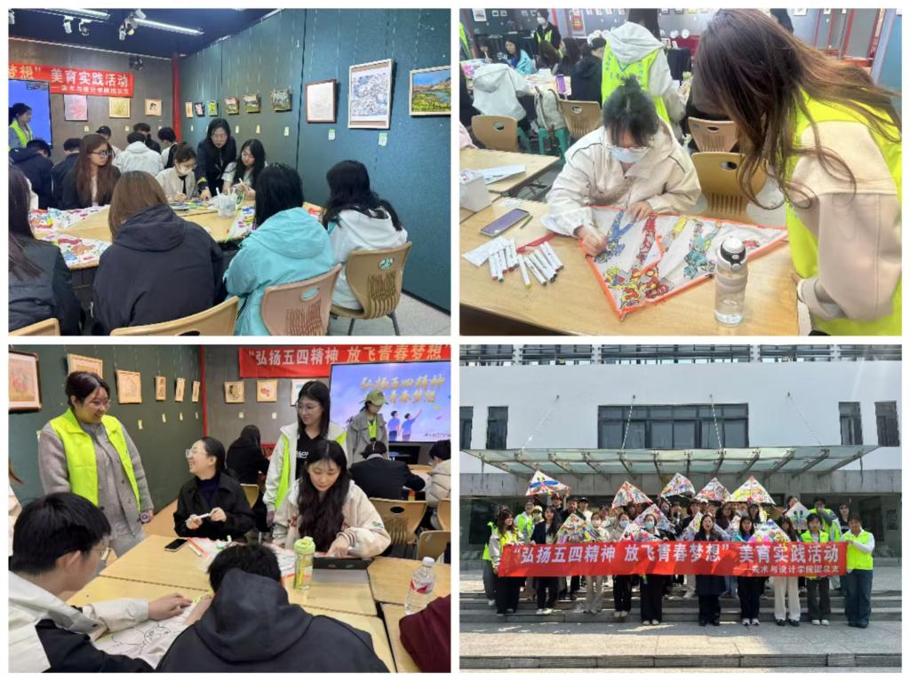 4月26日,美术与设计学院以弘扬五四精神为主线,创新美育实践形式,同步开展团学干部及青马班学员走进通辽市特殊教育学校,以“共绘青春梦想”为主题设计创作五四精神主题墙绘;校内联动9个学院25名学子以传统风筝为载体,围绕“五四精神”“青春向党”等主题进行彩绘创作。两场活动双线并进,既通过公益墙绘传递爱国情怀,又以传统风筝为纽带架起跨学科美育桥梁,形成“校内+校外”“创作+育人”的立体化实践模式。