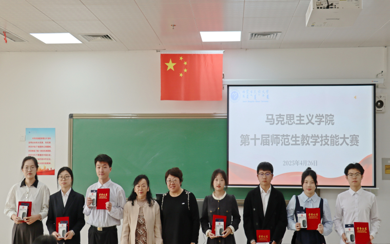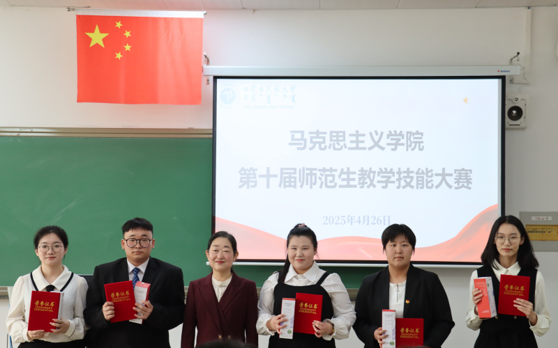 为全面落实新时代“四有”好老师培养目标,系统构建师范生核心素养发展体系,强化师范生教学基本素质与核心能力,4月26日上午,马克思主义学院举办第十届师范生教学技能大赛。比赛邀请通辽市教研室政治教研员张慧梅,通辽市实验中学政治学科首席教师王晶,通辽市第一中学政治学科组长王圆,通辽市第五中学政治学科备课组长杨宁;马克思主义学院副院长舒心心教授,督导张丽红教授,思想政治教育专业建设中心主任李文玲副教授担任评委。22名思想政治教育专业学生参加比赛。