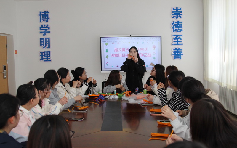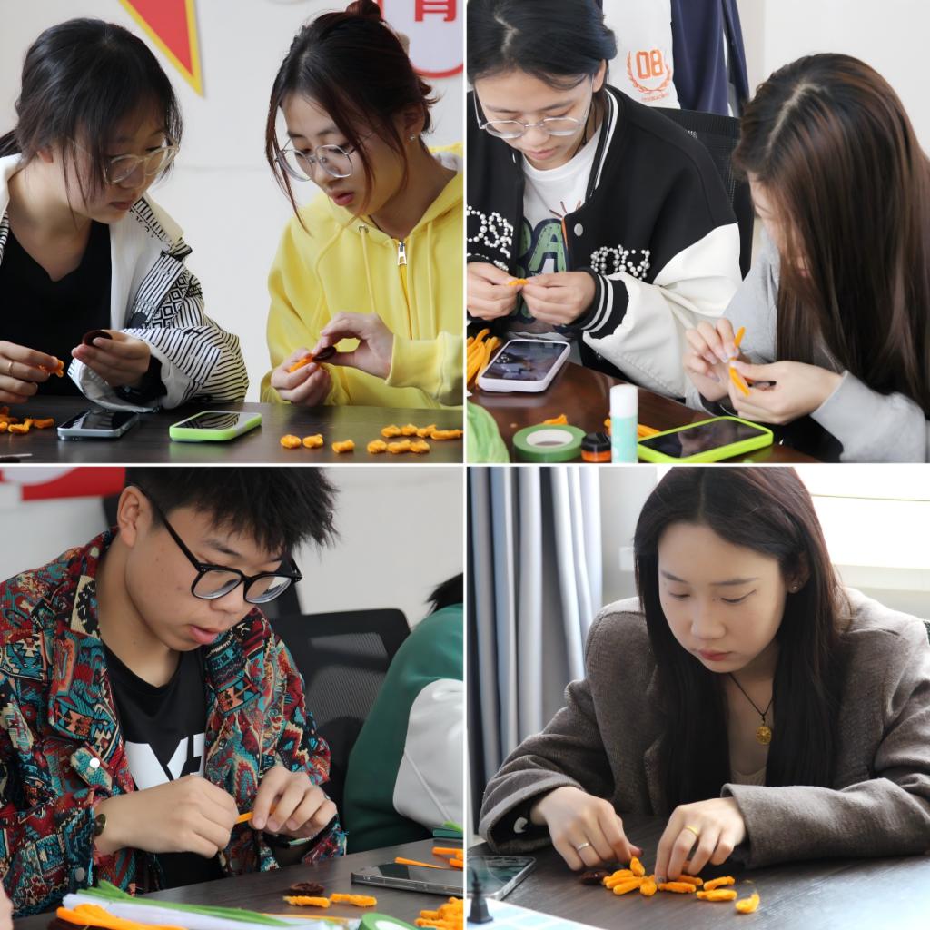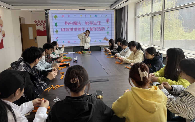在五一国际劳动节到来之际,学生处在滨河园区“一站式”学生社区1号、3号学生公寓多功能室同步举办“指尖魔法 妙手生花”创意手工制作活动。学生处易班发展中心主任刘玲慧,劳动教育教研室主任于灵智与学生一同参加活动。