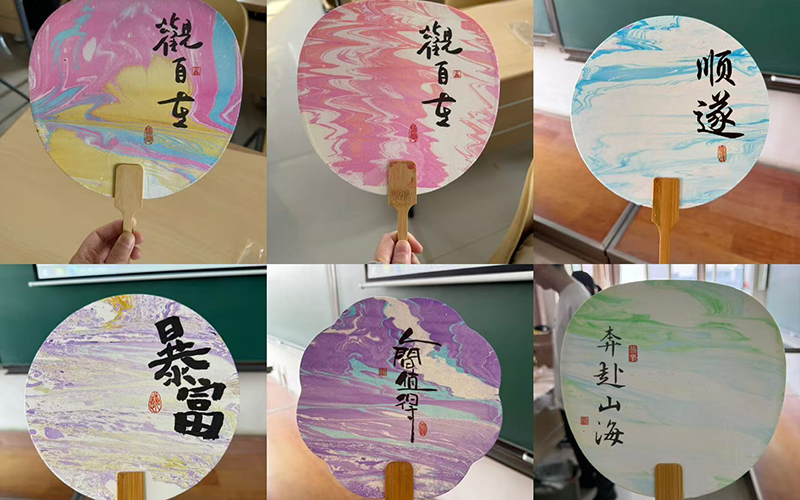 活动中,工作人员详细介绍漆扇与扎染的制作步骤与技巧。在漆扇制作环节,同学们亲自尝试调制漆液,运用水拓技法,观察漆液在水面流动晕染,感受 “漆色入水成画” 的奇妙。随后将水面图案拓印至素面团扇,每一把扇子都形成独一无二的纹理,充分展现传统工艺的独特艺术性。扎染制作过程中,同学们仔细挑选布料,用心构思捆扎方式,通过浸染、固色等工序,将普通的布料赋予独特的色彩与图案。每一个步骤都倾注着同学们的创意与专注,大家在实操中逐渐领悟传统技艺的精妙。