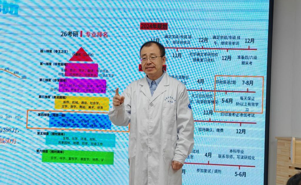 活动中,翟景波教授深入分析了当前考研形势,并强调自控力不仅是考研成功的关键,更是学术道路上不可或缺的品质。王兴亚学长以“成长”为主线,通过孝道、责任、目标、定位、静心、感恩、自律7个关键词,分享了自己的奋斗经历与感悟。王帅学长聚焦学习的意义,以“自强、自立、自律”为切入点,向同学们传递了积极向上的人生态度。