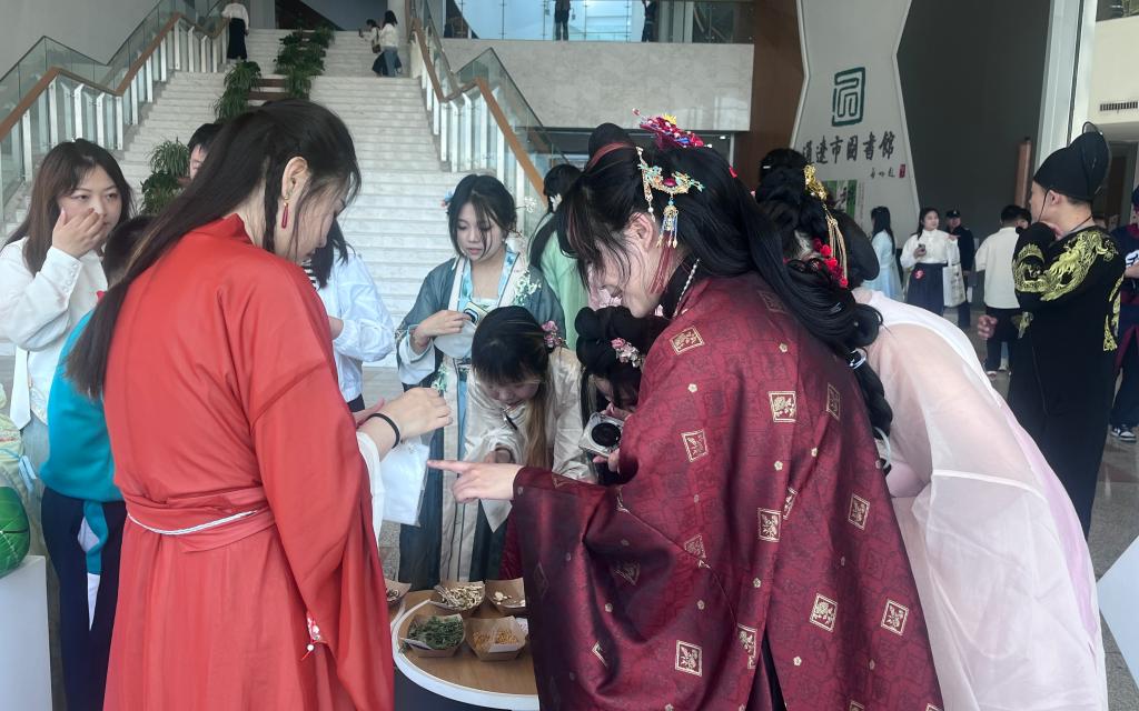 5月25日上午,我校天一国学会社团13名成员参加了通辽市图书馆举办的“古风端午奇遇记 棕王争夺战”主题活动。活动现场人潮涌动,节日氛围浓厚。