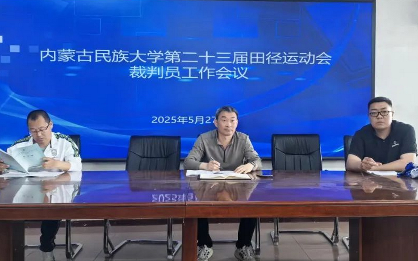为保障学校第二十三届田径运动会顺利举办,5月27日上午,体育学院在奥体中心二楼会议室召开裁判员工作会议。会议由校园健康运动中心主任戴暘主持,体育学院副院长潘正坤、田径教研室主任徐大成及全体裁判员和相关工作人员参会。