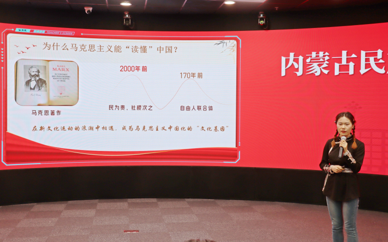 马克思主义学院副院长舒心心为获得优秀奖的选手颁奖