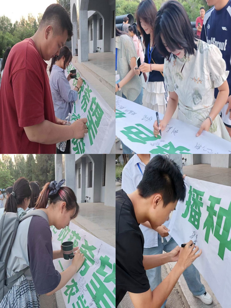活动现场,工作人员为每位参与者分发了花盆、营养土及花种。同学们专注地松土、均匀播撒种子、细心覆盖薄土,在每一个动作中感受生命孕育的奇妙过程,体验亲手创造的喜悦。播种环节结束后,大家拿起彩色画笔,在明信片上写下对未来的美好期许或温暖的自我鼓励话语,随后将满载心意的明信片投入“心愿信箱”,让文字承载希望,传递美好愿景。活动尾声,同学们在印有“播种绿色,收获希望”的横幅上郑重签名,用一笔一画定格这份充满治愈力量的难忘时光。