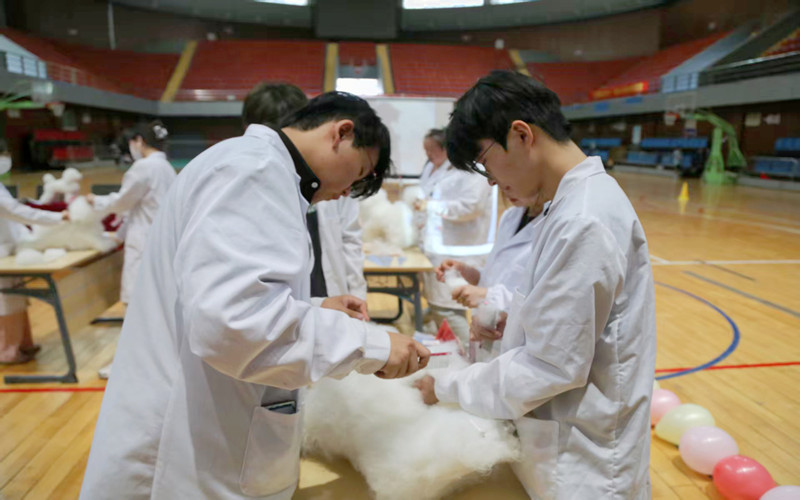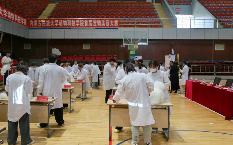 为提升学生劳动实践能力,6月6日下午,动物科技学院在奥体中心篮球馆内举办首届宠物美容大赛。