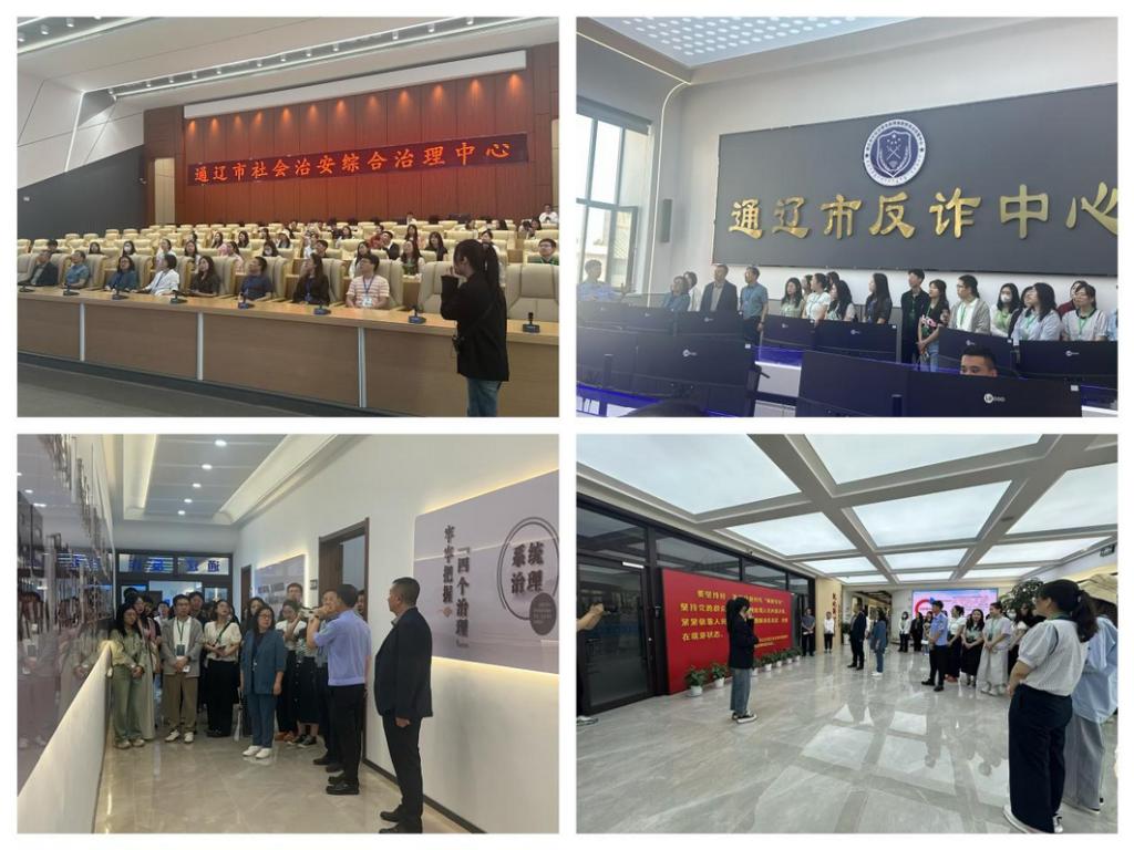 在通辽市社会治安综合治理中心,参观了市社会治安综合治理中心接待大厅、心理咨询室、公共法律服务室、矛盾纠纷调解室、司法确认室、医疗事故鉴定室、“雪亮工程”视频监控室、市反诈中心、市法学会、政法融媒体中心等地,实地了解了综治中心机构设置、人员配备、单位入驻、运行机制、化解模式、实战成效等方面情况。从“茶桌调解会”到“数字乡村”监控平台,展现了基层治理的“精细化”与“数智化”结合,对市域治理现代化具有重要借鉴意义,也让学生们深刻感受到基层治理“平安密码”背后的实践智慧。
