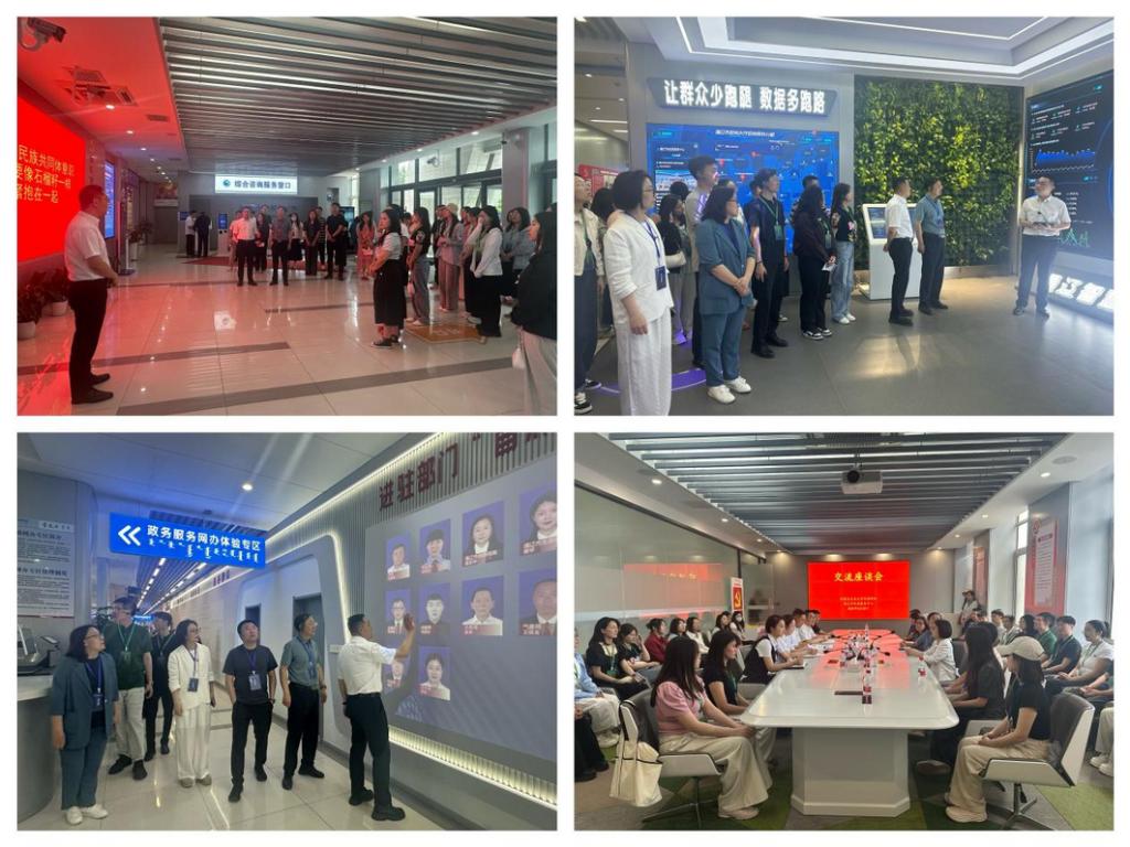 在通辽市政务服务中心,通过负责人的介绍,详细了解其在场所建设、业务办理、人员管理、安全管理等方面的智能化建设情况,了解其在数字化运营、智能化拓展、大数据管理等方面的应用现状,以及人工智能对政府工作的具体影响。学院师生一行深入调研了“企业视频帮代办系统”“一窗受理”综合窗口及智能问答机器人等智慧服务场景,切实感受“从‘群众跑腿’到‘数据跑路’”的转变。