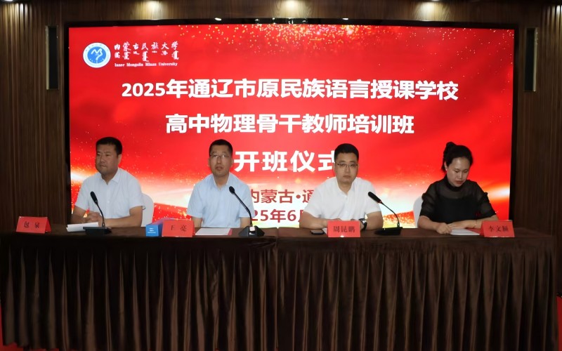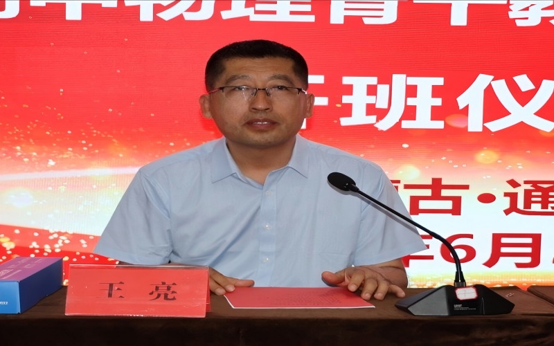 6月23日上午,由我校承办的2025年通辽市原民族语言授课学校高中物理骨干教师培训班开班仪式在通辽市碧桂园凤凰酒店召开。学校继续教育中心主任王亮、物理与电子信息学院副院长周昆鹏,通辽市原民族语言授课学校31名高中物理骨干教师参加开班仪式。通辽市教育局党建办公室主任包泉主持仪式。