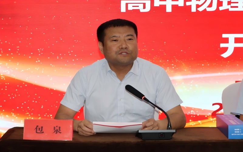 周昆鹏详细介绍了物理学科培训方案。继续教育中心培训科科长李文颖宣读“学员管理规定”。通辽市蒙古族中学物理教师郎红云代表参训学员作表态发言。
