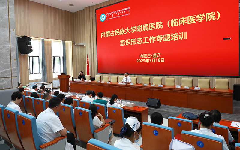 7月18日,内蒙古民族大学附属医院(临床医学院)组织开展意识形态专题培训,院党委书记康曙光主持会议并讲话,院领导班子、中层干部及全体教学工作相关人员参加培训。