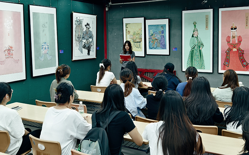 活动中,音乐学院的同学们带来了精彩表演。悠扬的马头琴演奏,仿佛将大家带入广袤无垠的草原;欢快的蒙古舞,展现出少数民族的热情与活力,现场气氛热烈。美术与设计学院的同学们也毫不逊色,他们饱含深情地诵读《可爱的中国》《青春之歌》等红色经典作品,激昂的语调传递出对祖国炽热的爱。表演与诵读结束后,两个姊妹班的同学共同欣赏了美术与设计学院毕业生优秀作品展。同学们在一幅幅精美的作品前驻足讨论,共同感受艺术的魅力。