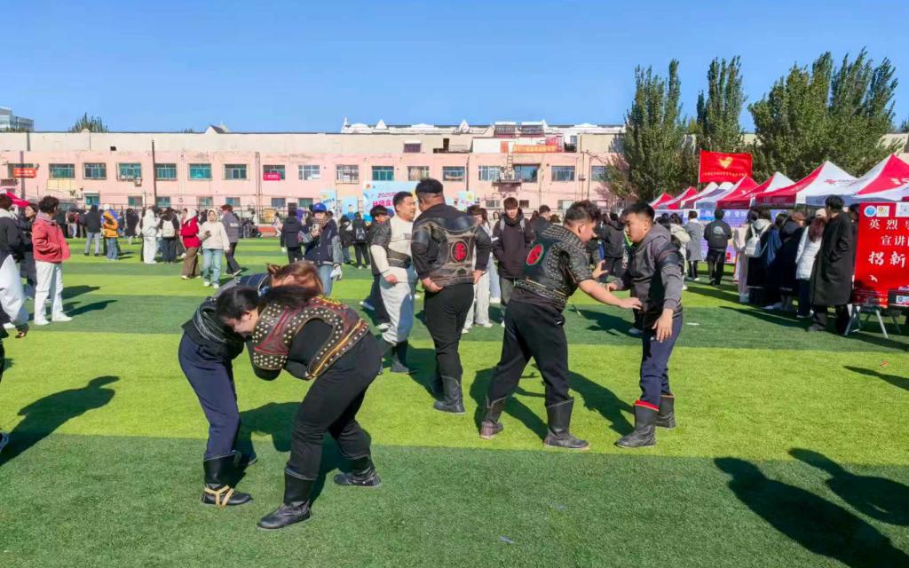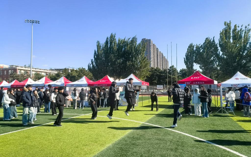 活动现场,各社团通过精心布置的特色展位充分展现独特魅力,积极招纳新成员。体育嘉年华环节更是亮点纷呈,羽毛球、飞盘、跑步、搏克、轮滑等社团设计的趣味挑战赛与传统体育项目体验区相映成趣,校学生会带来的模拟体测活动更为同学带来有趣的体验,整个操场化身为竞技与娱乐交融的活力赛场,同学们在欢声笑语中感受着体育运动的独特魅力。