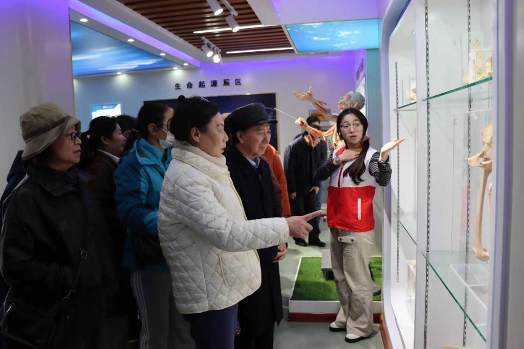老同志们移步至基础医学院人体生命科学馆。红十字志愿者通过生动展示和详细解说,向老同志们介绍了人体从胚胎发育到成长成熟的奇妙过程,以及人体各个器官的结构和功能。老同志们对这一领域的知识表现出浓厚兴趣,纷纷感叹生命的神奇和科学的伟大。在活动现场,红十字志愿者为老同志们介绍心肺复苏操作流程,从动作要领到力度把控都逐一细致示范。老同志们踊跃参与体验,在互动交流中了解了急救技能。