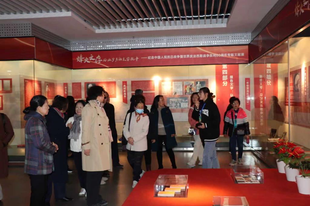 老同志们参观了校博物馆“烽火文存:浴血岁月的文学抗争——纪念中国人民抗日战争暨世界反法西斯战争胜利80周年专题文献展”,参观过程中,老同志们驻足于一件件珍贵的抗战文献前,端详着泛黄的书页与手稿,回想战火纷飞的岁月,眼眸里闪动着对历史的敬重与对和平的珍惜。