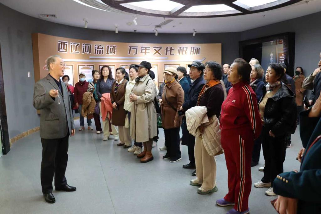 老同志们参观了西辽河文明展厅。西辽河文明研究专家工作站首席专家、我校老年科技工作者协会会长张铁男作精彩讲解,他从西辽河文明的起源讲起,详细介绍了西辽河流域的历史变迁、文化特色以及在中华文明发展进程中的重要地位。老同志们全神贯注地聆听,不时提出自己的见解和疑问,进行了热烈的互动交流。